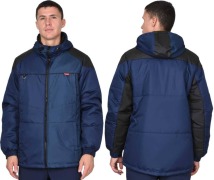 Куртка прямого силуэта, удлинённая, с втачным капюшоном, с центральной застёжкой на молнию, с внутренней планкой. Куртка с верхними и нижними внутренними карманами в рельефах полочек, с карманом на подкладке на молнию. Рукава втачные с манжетами, частично стянутыми на резинку. В куртке предусмотрена петля из тесьмы с полукольцом для крепления бейджа.