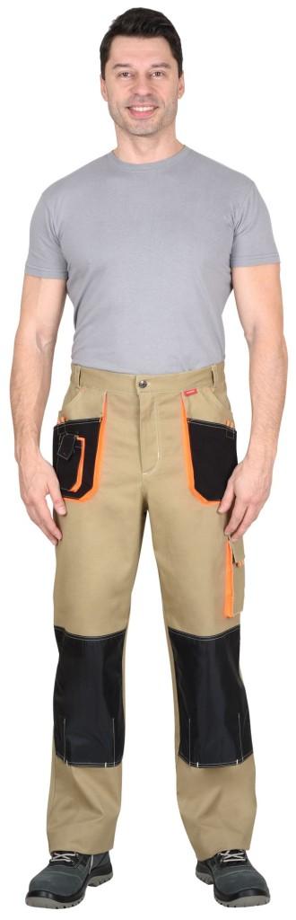 Брюки с застёжкой гульфика на молнию, с поясом на резинке, со шлевками, с накладными боковыми объемными карманами, с объемными наколенниками, с накладным объемным карманом на боковом шве с клапаном на липучке, двумя объемными карманами с клапанами на задних половинках, и карманами для инструментов.