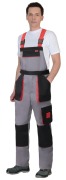 Полукомбинезон прямой, с бретелями, с застёжкой спереди и с застёжкой в правом боковом шве на пуговицы, с наколенниками. Полукомбинезон с различными многофункциональными накладными карманами, спинка с частичной стяжкой по талии для лучшего прилегания по фигуре. Длина бретелей регулируется при помощи застежек – фастексов и резинки.
