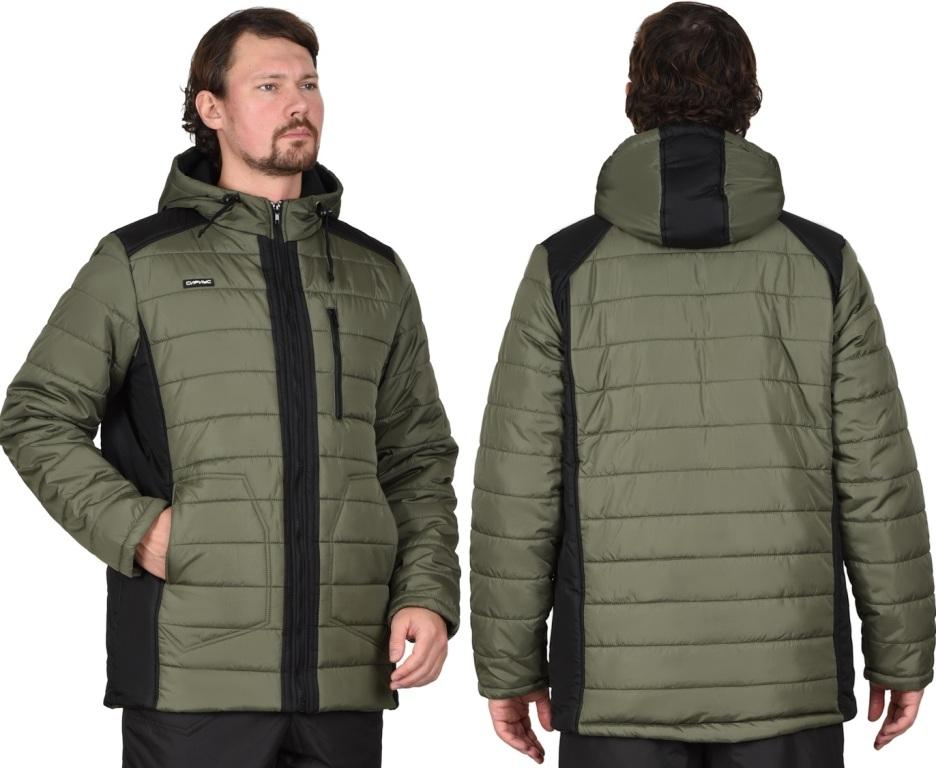 Куртка комбинированная из ткани двух цветов, с центральной застежкой на молнию, с удлиненной фигурной линией низа по спинке, с втачным капюшоном, с втачными рукавами. Куртка с левым нагрудным прорезным карманом на молнию, нижние карманы в швах. На подкладке с правой стороны накладной карман на молнию.