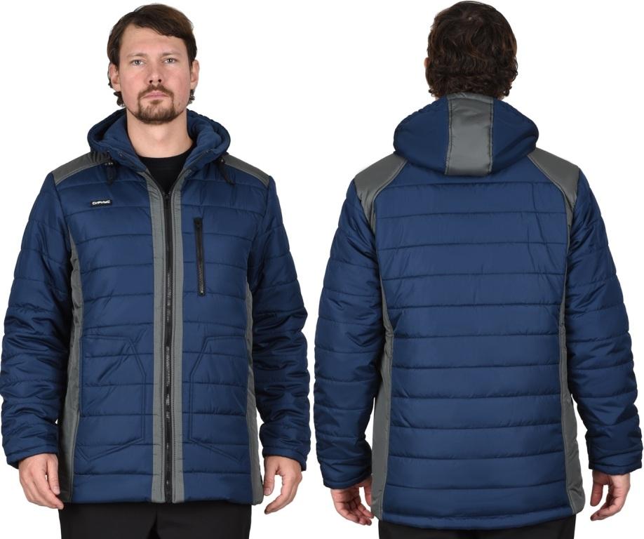 Куртка комбинированная из ткани двух цветов, с центральной застежкой на молнию, с удлиненной фигурной линией низа по спинке, с втачным капюшоном, с втачными рукавами. Куртка с левым нагрудным прорезным карманом на молнию, нижние карманы в швах. На подкладке с правой стороны накладной карман на молнию.